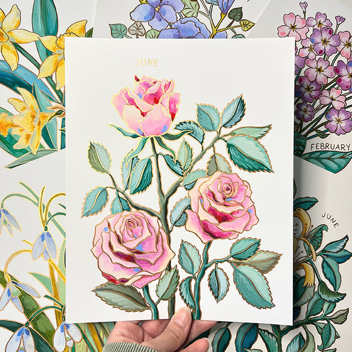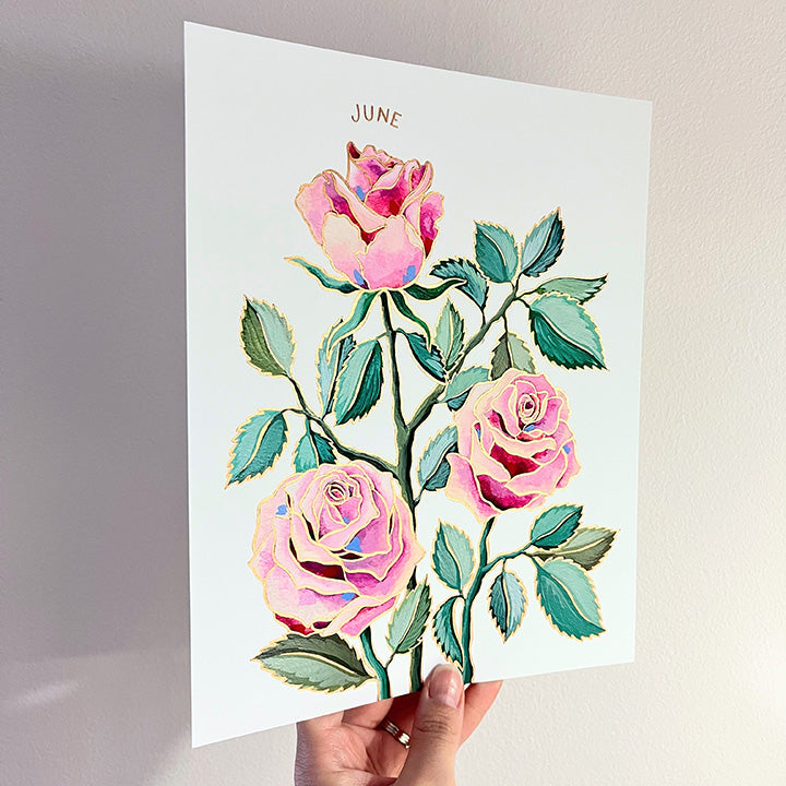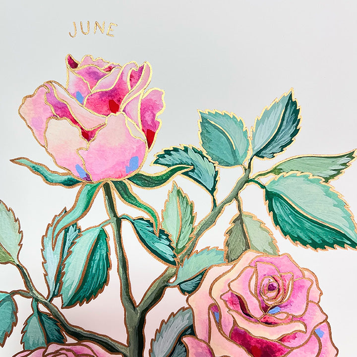 Birth Flower Hand-Embellished Print | June Roses