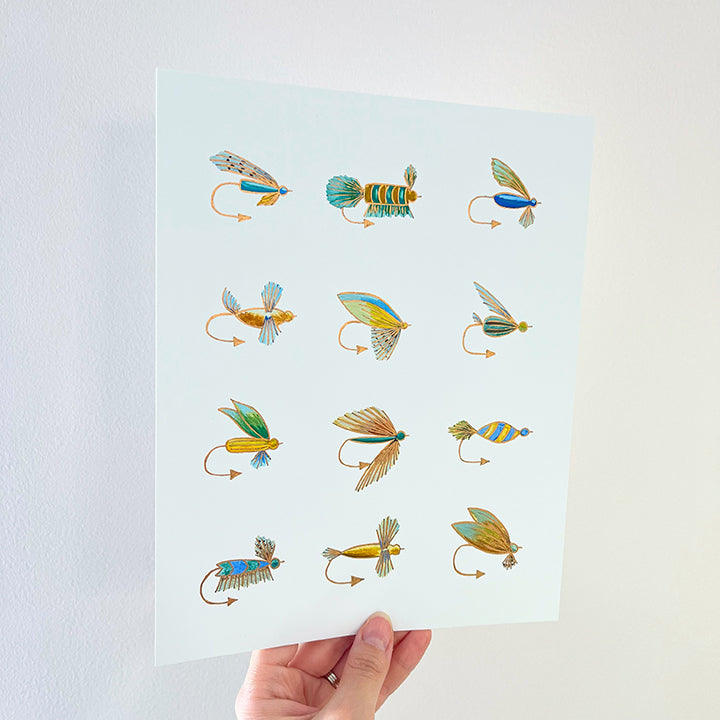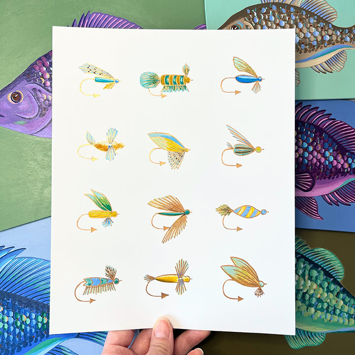 Whether you own a lake house or simply love to fish, this hand-embellished fishing flies print will bring color and personality to your space. Keep it for yourself or gift it to a loved one to celebrate a birthday, Father’s Day, or other special occasion.