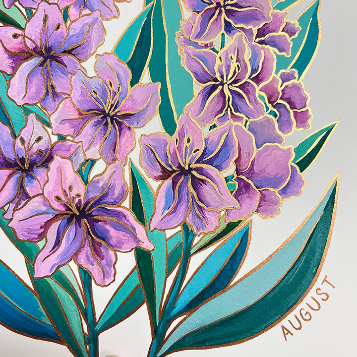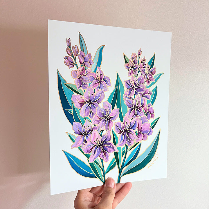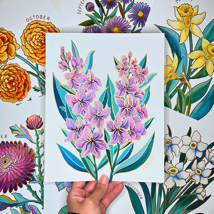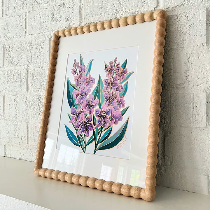 One of August's birth flowers, the gladiolus represents strength and integrity and is captured beautifully in this hand-embellished print. Gift it to a loved one to celebrate a birthday, new baby, Mother’s Day, etc. — or form your own family bouquet with a unique print for each member of your family.