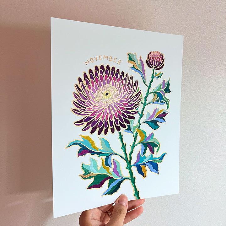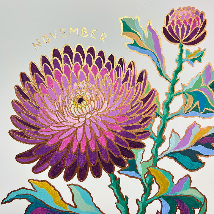 Birth Flower Hand-Embellished Print | November Chrysanthemum