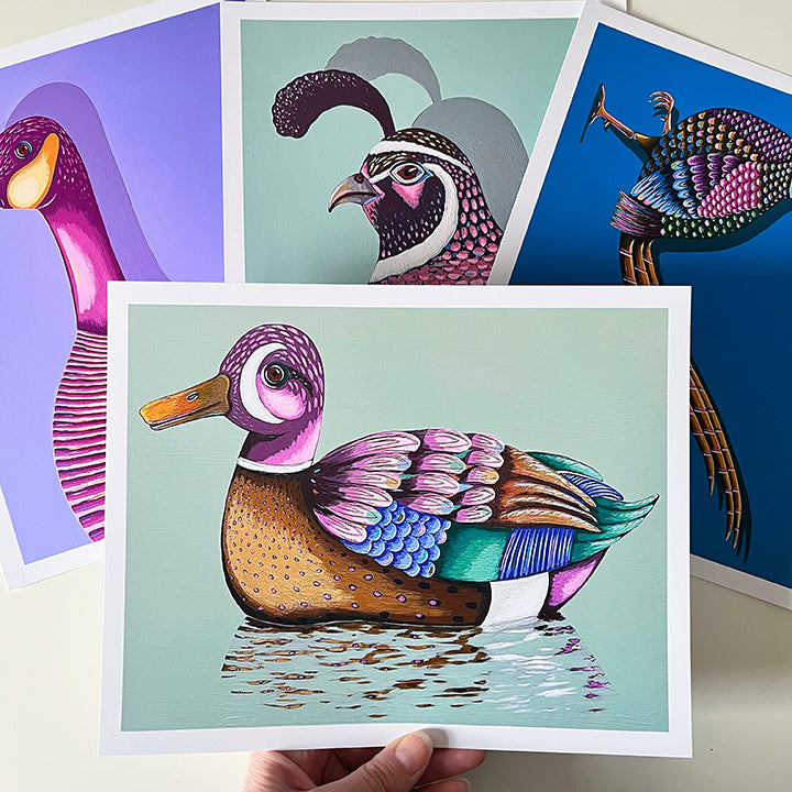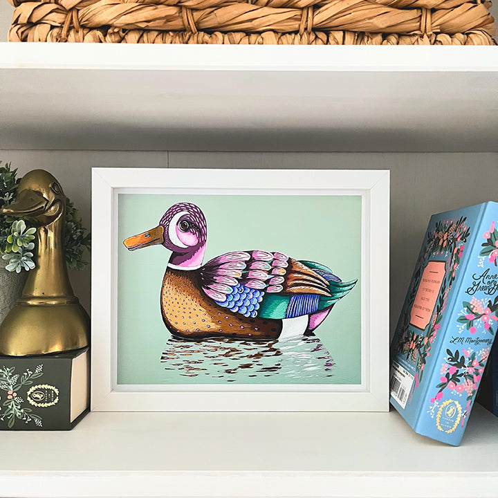 Bring a touch of whimsy and personality to your space with this high-quality art print featuring a colorful duck — perfect for a nursery, play space, bathroom, and more.