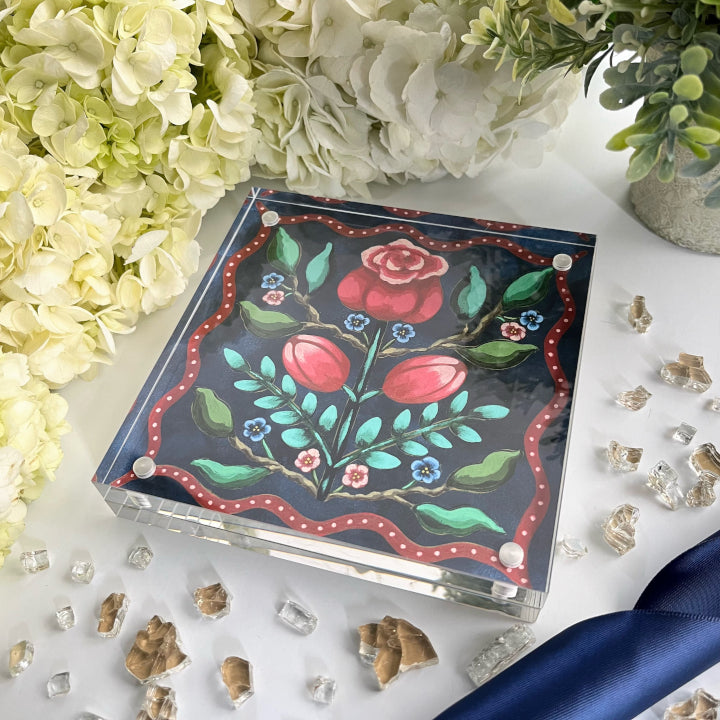 Fine art giclée reproduction printed with archival inks on premium, acid-free, 100% cotton paper and framed in an acrylic block.