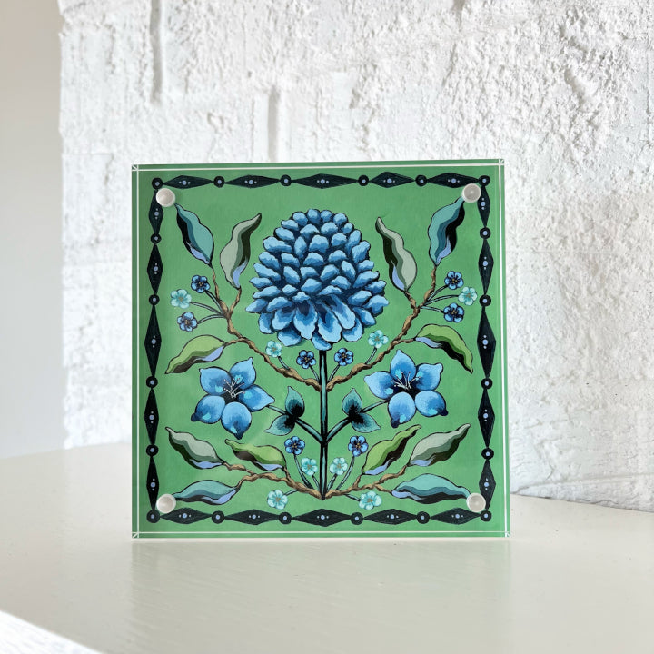 Fine art giclée reproduction printed with archival inks on premium, acid-free, 100% cotton paper and framed in an acrylic block.