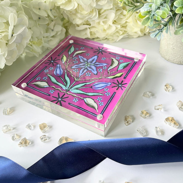 Fine art giclée reproduction printed with archival inks on premium, acid-free, 100% cotton paper and framed in an acrylic block.