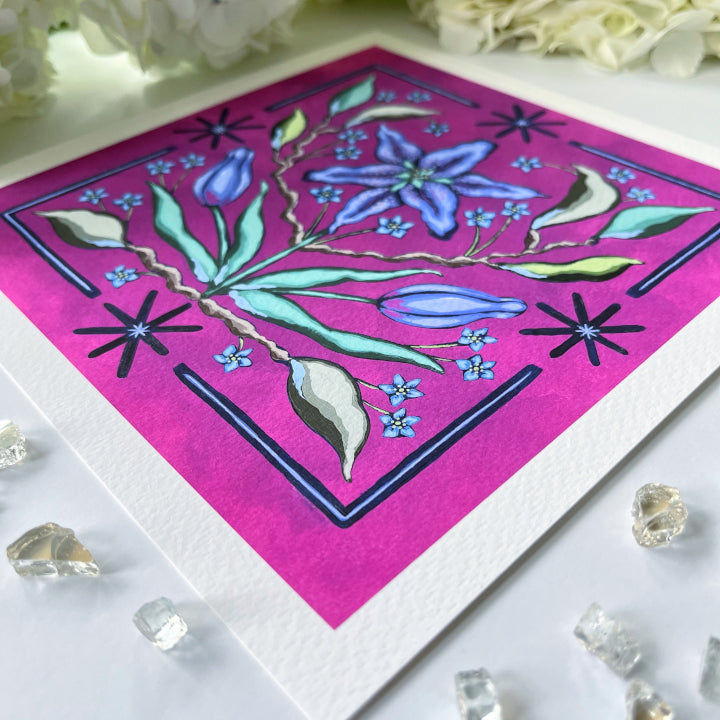 Fine art giclée reproduction printed with archival inks on premium, acid-free, 100% cotton paper.