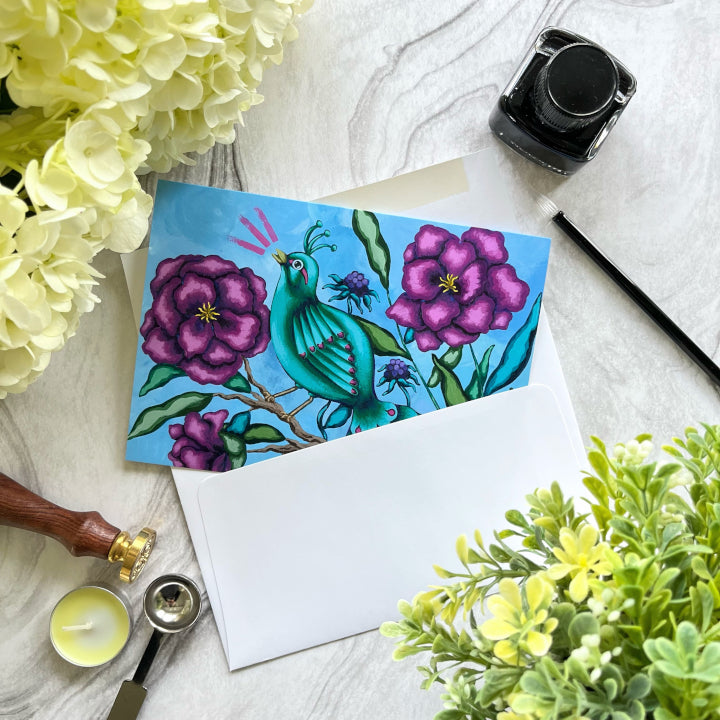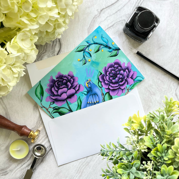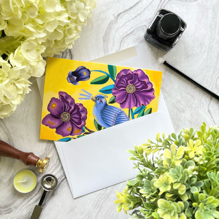 Perfect for any occasion, the "Spring Songbirds I" greeting cards can be sent to friends and family or framed to display as mini prints!