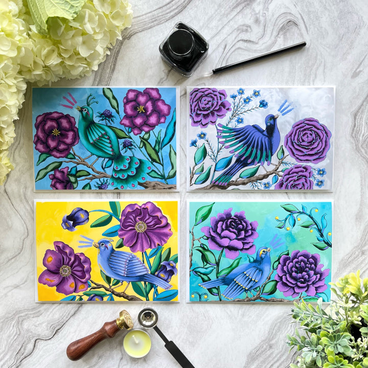 "Spring Songbirds 1" Greeting Cards | Mixed Set of 4