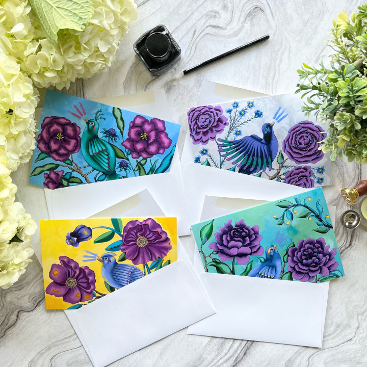 - Set of four 5"x7" (A7) folded cards — one each of four different designs
